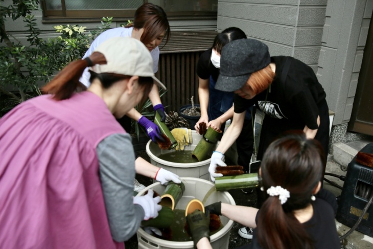 作業はわずか2時間で終了!これまで長い時で二日間もかかっていた竹伐りからの竹キャンづくり。