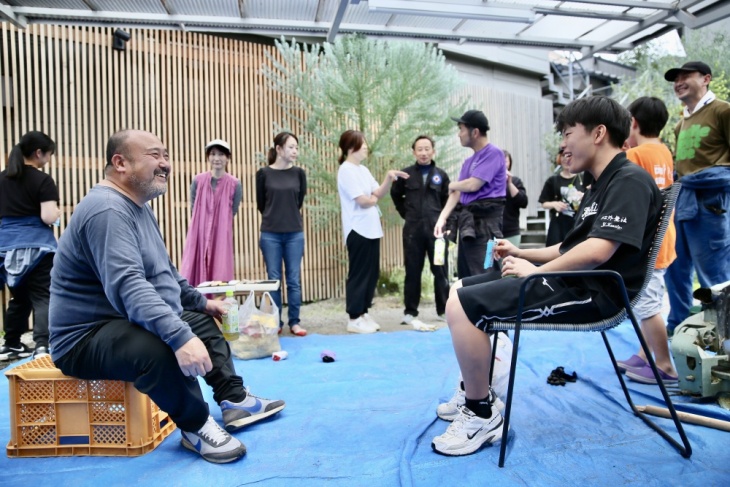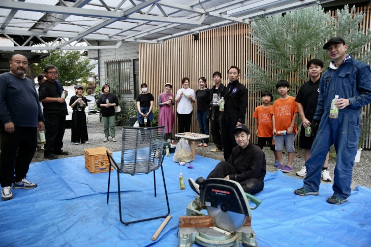 2025年10月19日(日)、午前中古賀の山奥へ竹伐り後、午後からお寺で竹の整形作業。